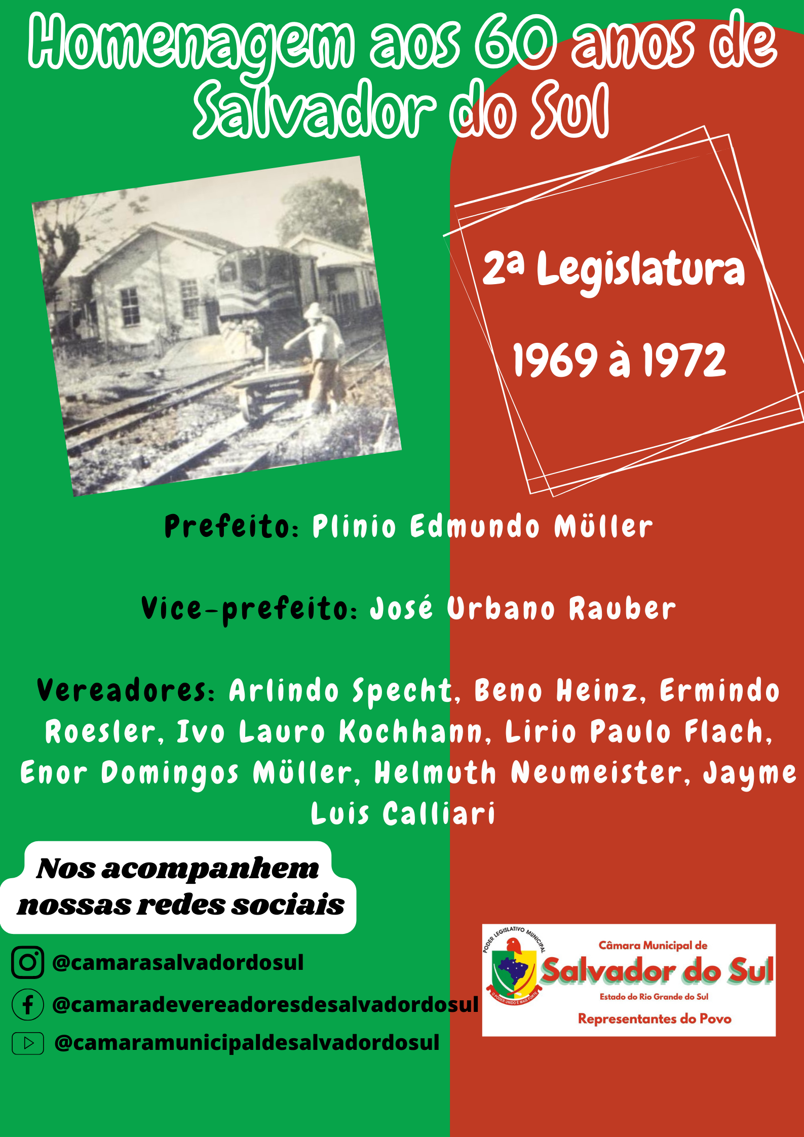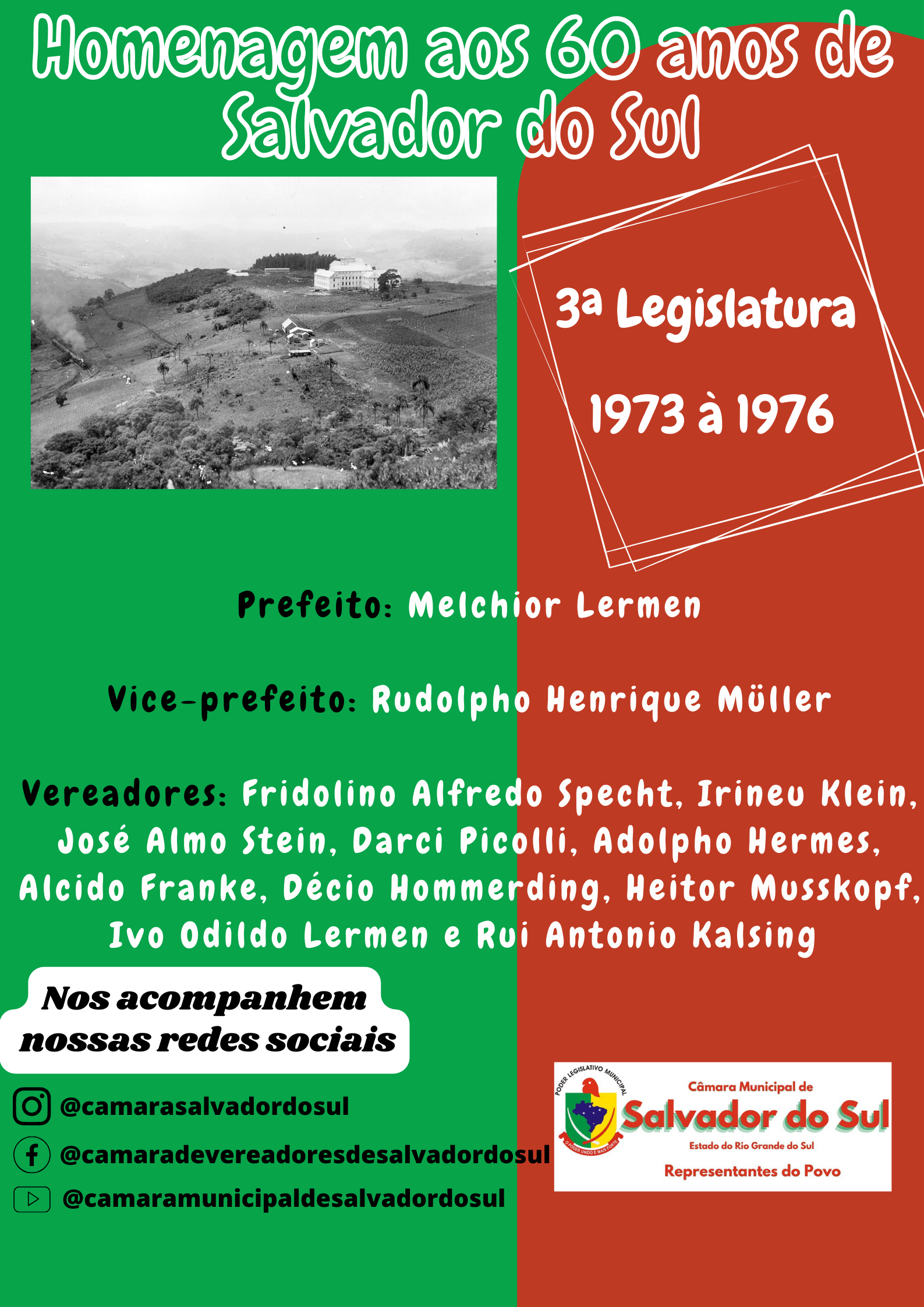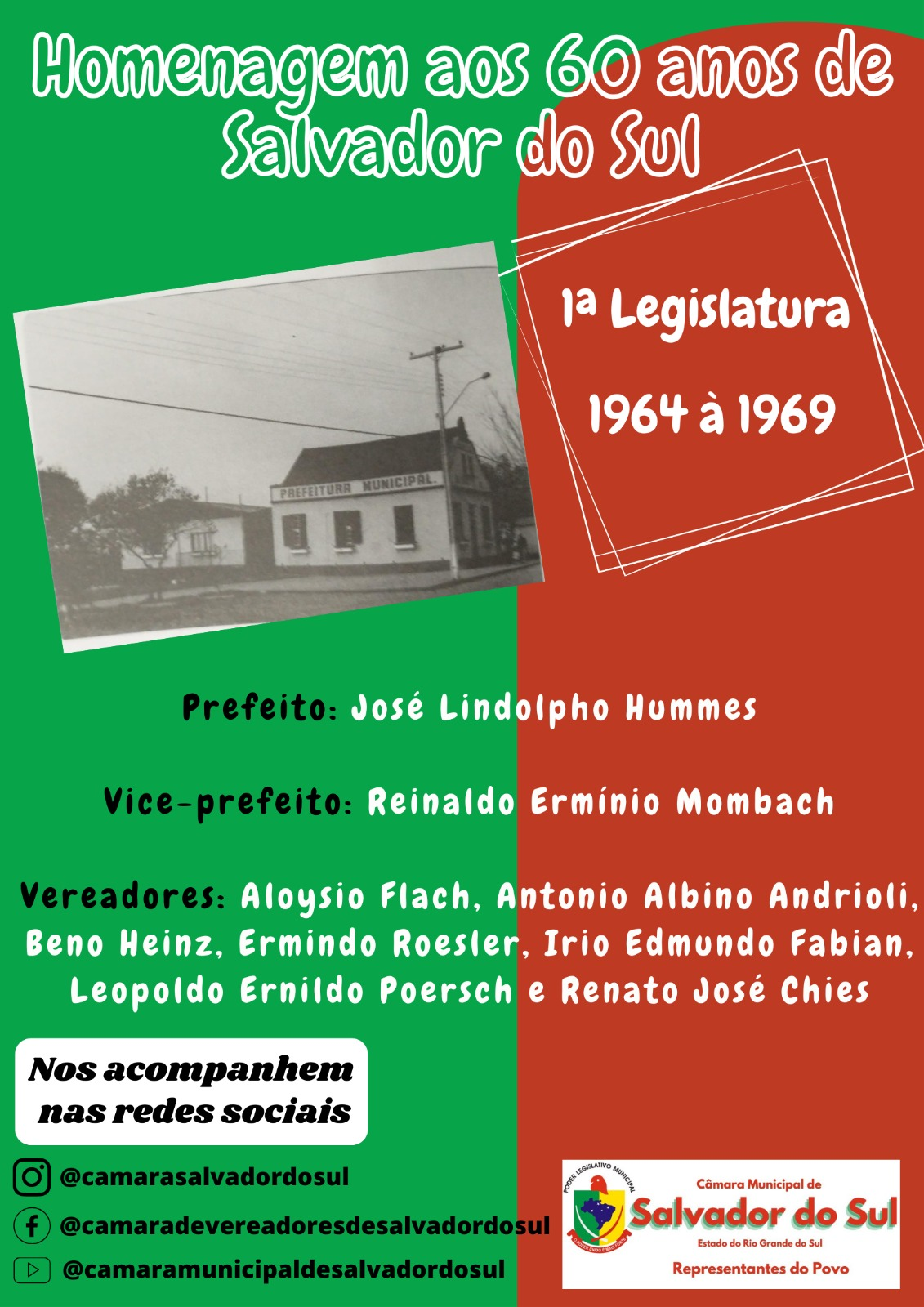 Em comemoração aos 60 anos de Emancipação política de Salvador do Sul, a Câmara Municipal de Vereadores fará homenagens às Legislaturas desde 1964 à 2023. Ao todo são 14 Legislaturas de história. E por 14 dias iremos postar essas homenagen...